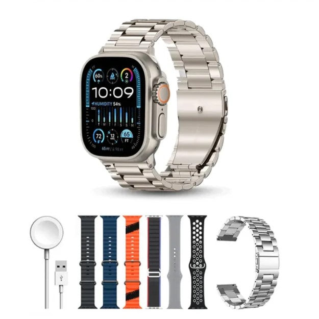 Experience advanced health tracking and seamless connectivity with the 7 in 1 Ultra Smart Watch. Featuring a vibrant 2.19-inch IPS display and seven interchangeable straps, it adapts to any style. Stay connected through Bluetooth with built-in mic and speaker for calls, SMS, and app notifications. Monitor your heart rate and sleep patterns accurately while benefiting from multiple sports modes. With IP67 water resistance and wireless charging, this smartwatch combines durability and convenience for daily use. Customize watch faces and enjoy secure strap locks for a personalized and reliable wearable experience.