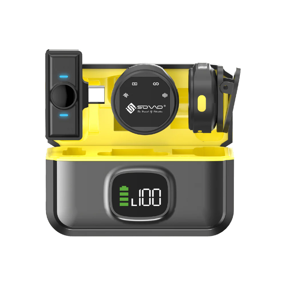 The Sovo Audia SWM-575 Wireless Mic delivers professional-grade audio with 48kHz/24Bit high-resolution recording and a signal-to-noise ratio of ≥70dB for crystal-clear sound. Featuring a clip-on lavalier microphone with intelligent noise reduction and ambient sound cancellation, it ensures exceptional clarity in interviews, recordings, streaming, and vlogging. Its 2.4G wireless technology supports up to 12 hours of continuous use, complemented by a portable, thin-body design. The included charging case features an LED battery and status display with USB-C fast charging for convenient power monitoring. Certified CE, FCC, and RoHS compliant.