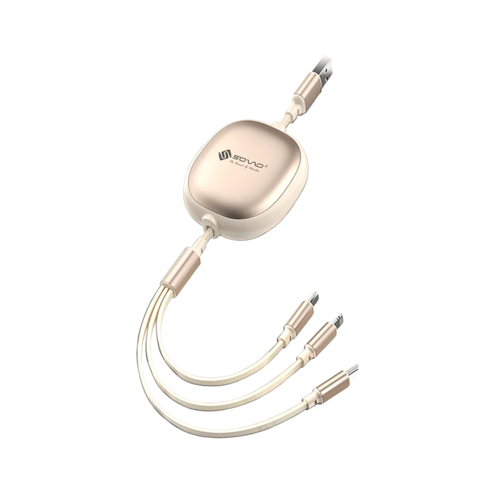 The Sovo Proton SG-118 5IN1 100W is a versatile fast-charging cable designed for convenience and style. Featuring USB, Type-C, Micro USB, and iOS connectors, it adapts effortlessly to multiple devices. Its unique stretchable connector enhances durability and ease of use, while the premium design adds a sleek, modern touch. Experience efficient power delivery up to 100W combined with a stylish build that complements any tech setup. Ideal for users seeking a multifunctional, reliable charging solution in one compact cable.